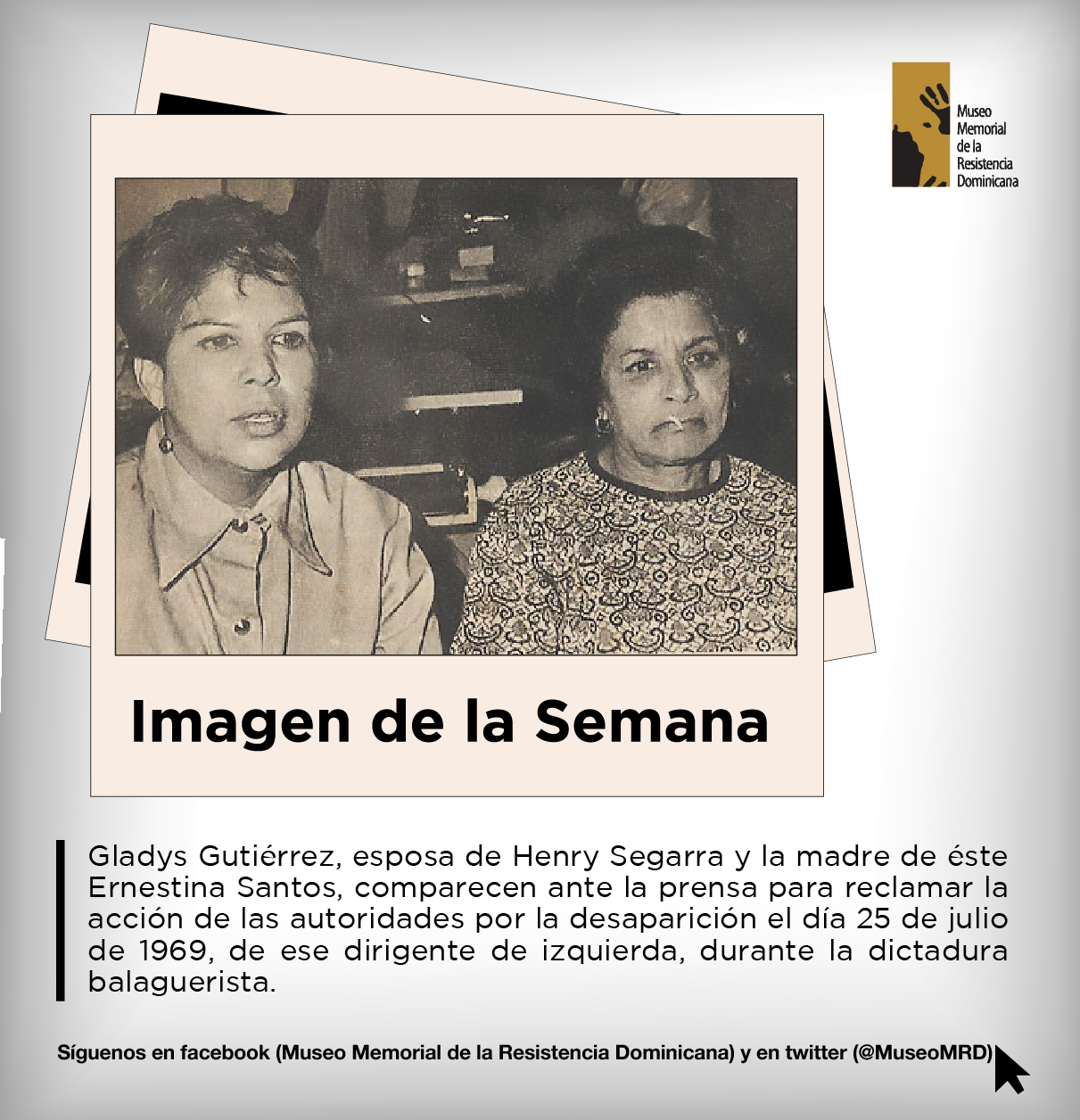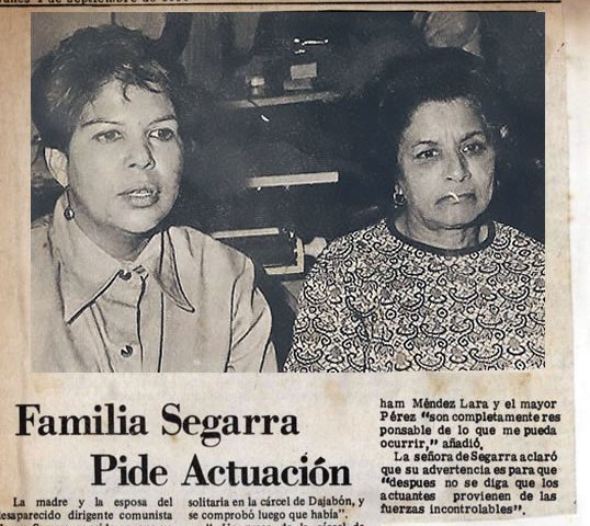 Gladys Gutiérrez, esposa de Henry Segarra y la madre de éste Ernestina Santos, comparecen ante la prensa para reclamar la acción de las autoridades por la desaparición el día 25 de julio de 1969, de ese dirigente de izquierda, durante la dictadura balaguerista.
