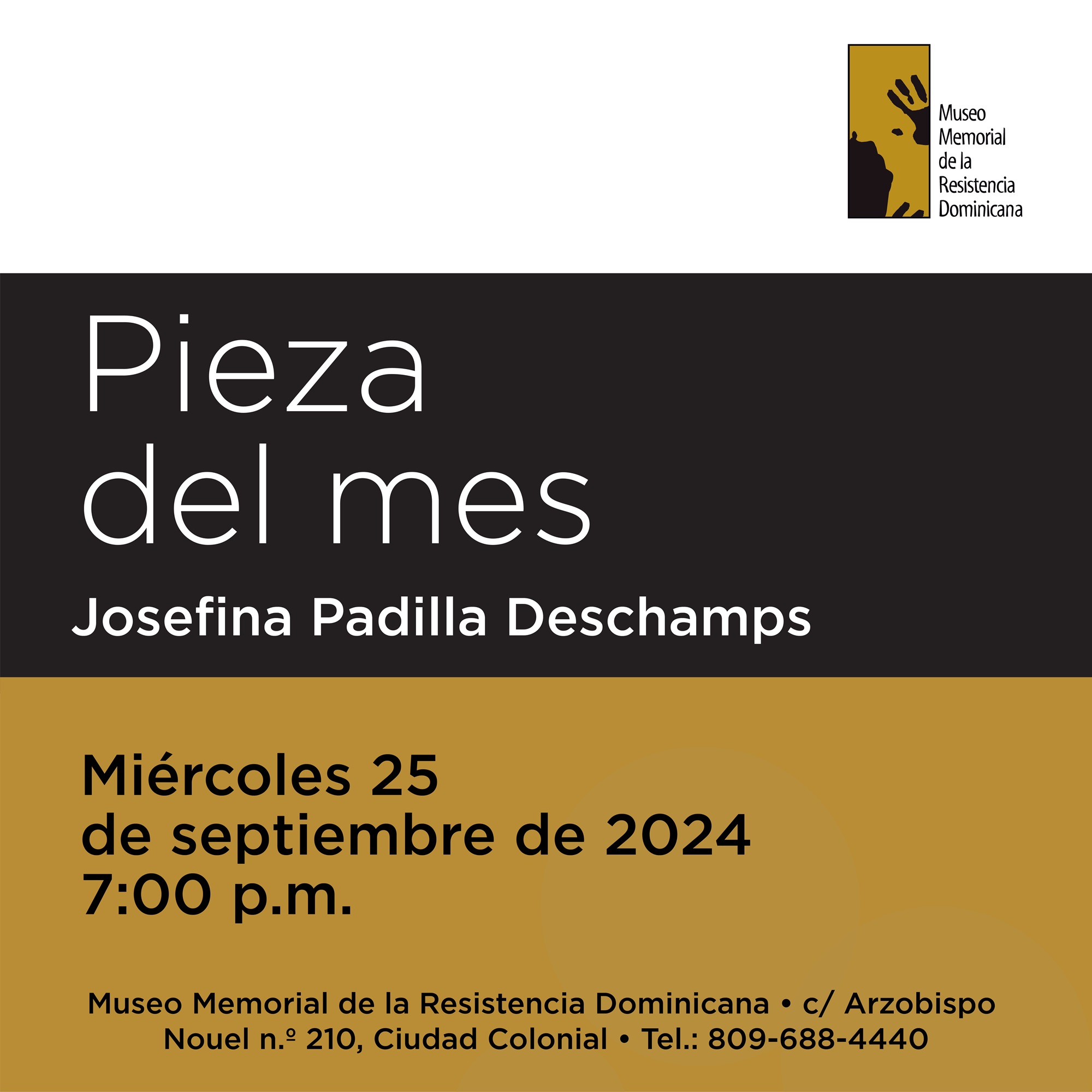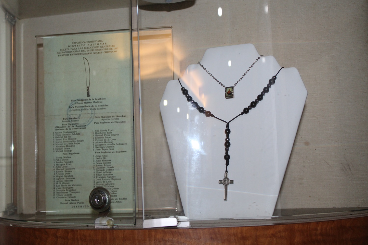 Durante un mes en el lobby del Museo se exhibirán varias piezas que pertenecieron a Josefina. “Escapulario perteneciente a Josefina Padilla. Junto al escapulario, su rosario. A la izquierda, una boleta electoral original de las elecciones de 1962, perteneciente al Partido Revolucionario Social Cristiano, donde aparece Josefina Padilla como candidata a la vicepresidencia. Esto la convirtió en la primera mujer en RD y en América que se postuló a ese puesto en unas elecciones generales”.
